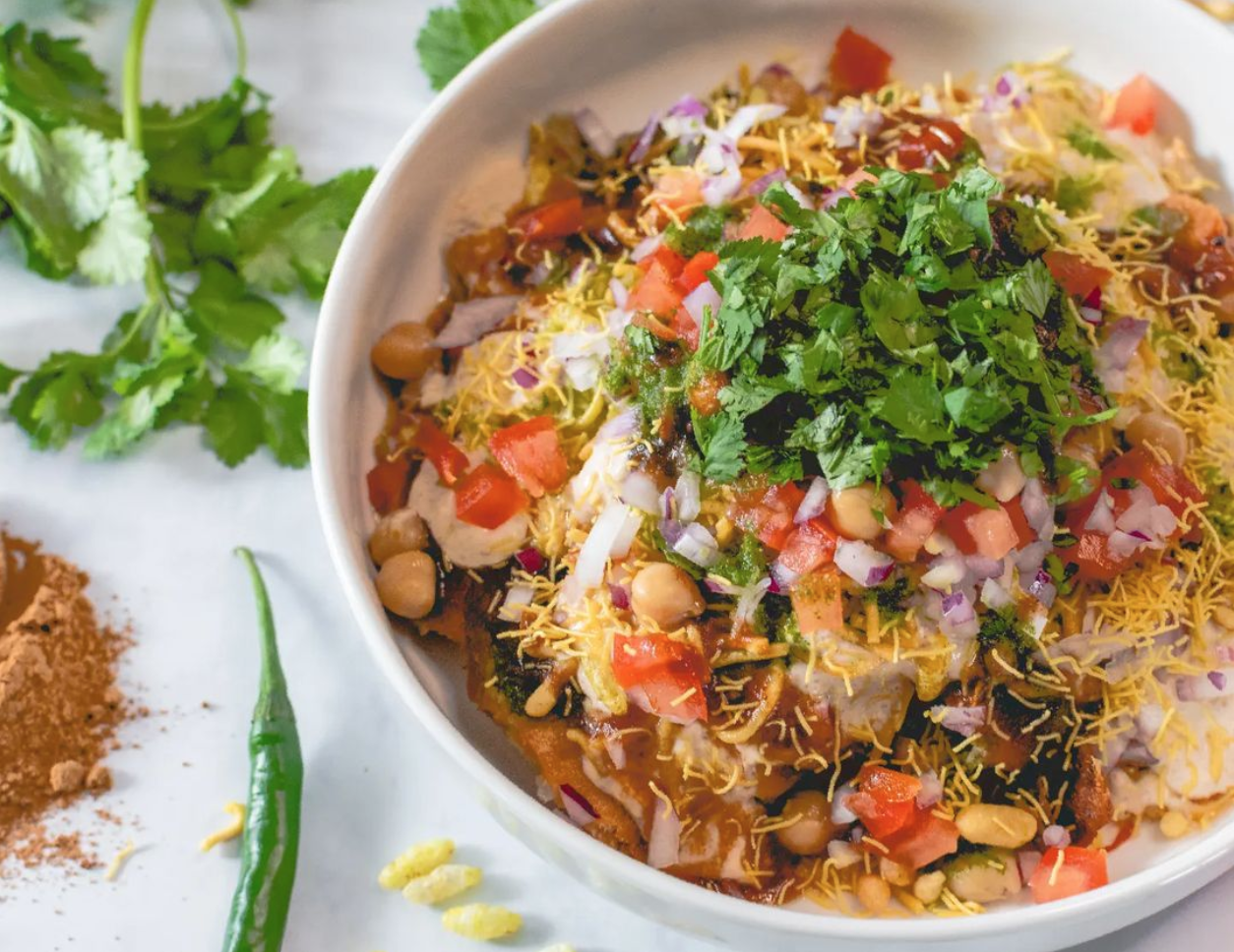 Samosa Chaat samosa pieces covered in chickpeas, yogurt, mint & tamarind chutneys, cilantro, and fresh spices Back to Menu