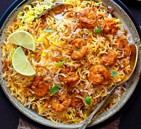 shrimp biryani Biryani rice cooked with pieces of shrimp with a blend of herbs and spices Back to Menu